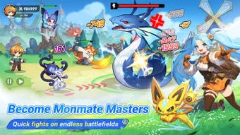 I spelet kan man även skapa och träna sina egna Monmate-squads, där varje Monmate har två former: en husdjursform och en fluffig form. Genom att använda resurser i ett avkopplande läger kan spelare öka produktionen och skörda fördelar. Med en automatisk funktion kan spelare också fortsätta sitt äventyr och samla resurser även när de inte spelar, vilket gör spelet både underhållande och lättillgängligt.
